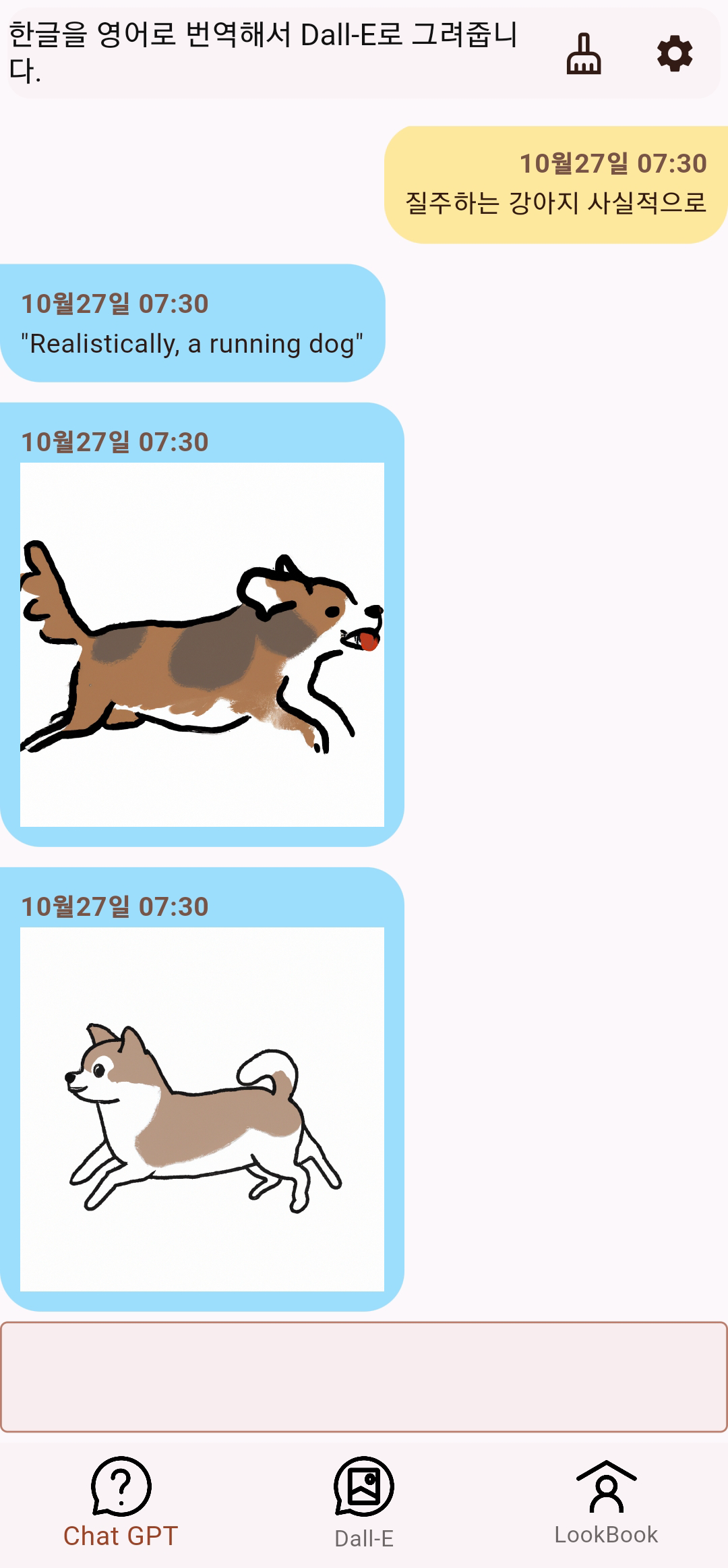 - Dall-E는 영문만 지원이 되기 때문에, chat gpt를 용해서 한글로 입력하면 영문으로 번역하고 나서 입력하는 형태로 하였습니다.