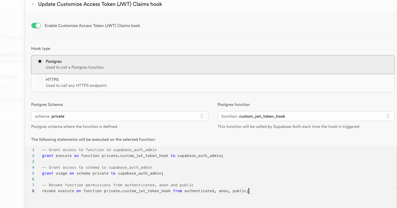Custom Access Token Hook | Supabase Docs