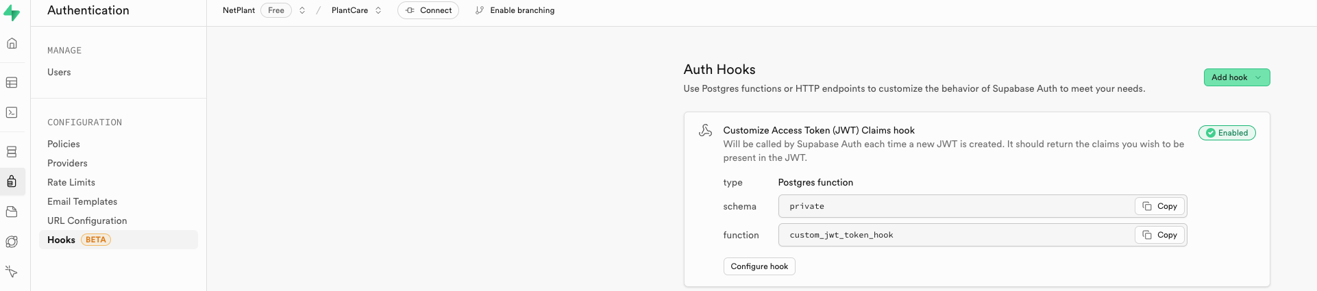 Supabase 에서 Auth Hooking 을 통해서 token 에 추가정보를 입력하기