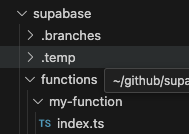 supabase 밑에 functions 라는 폴더가 생기고, 그 아래 my-function이라는 폴더가 만들어 지죠.